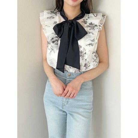 <b>【エアリーで華やかな主役級ボウタイリボンシアーノースリブラウス】</b>