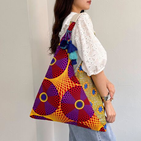 ・個性的な柄とダイナミックな配色が特徴のアフリカン風プリント生地を使用したトートバッグです