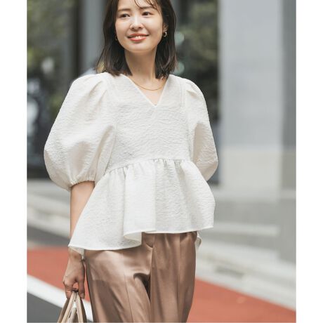 一見、可愛くなりすぎるペプラムもたっぷりとしたボリューム感を設けることで適度なスパイスさが生まれ、深めのVネックも相まって大人の格好良さも伝わるデザインです。