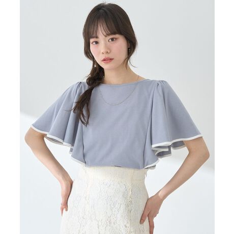 袖口にパイピングを施したフレアスリーブが存在感のあるカットソー。接触冷感性のある素材で仕立て、暑い季節も快適に着用していただけます。綺麗な表面感のポリエステル混生地で、カジュアルから上品なスタイリングまで幅広くマッチ。ご自宅で洗えるイージーケア仕様も魅力的なおすすめのアイテムです。