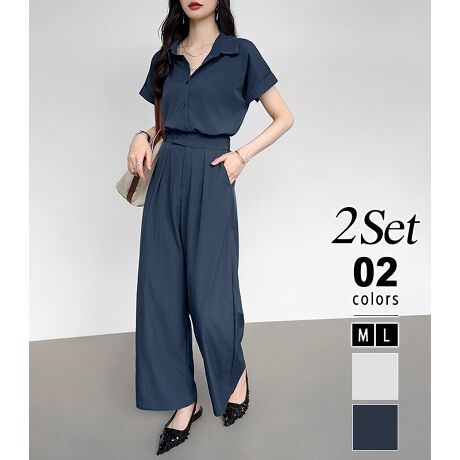 半袖シャツとワイドパンツの