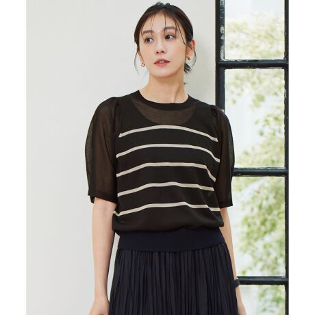 袖のボリューム感と繊細な煌めきが女性らしいプルオーバーニット■デザイン繊細なギャザーを入れたふわっと膨らむ袖が、華やかで女性らしい印象のプルオーバーニットです。シアー素材を使用しているので、ボリューム感のある袖も暑苦しくなく、涼しげな印象で着て頂けます。ややコンパクトな身頃のサイズ感なので、ワイドなボトムと合わせて着て頂くのもおすすめです。■素材程よいハリコシと心地よい清涼感、ブライト糸ならではの繊細な煌めきのある表情が華やかな素材です。暑い夏にも着て頂きやすいシアー感のある素材になっております。■同素材アイテムカーディガン(KRWRGA0053)
