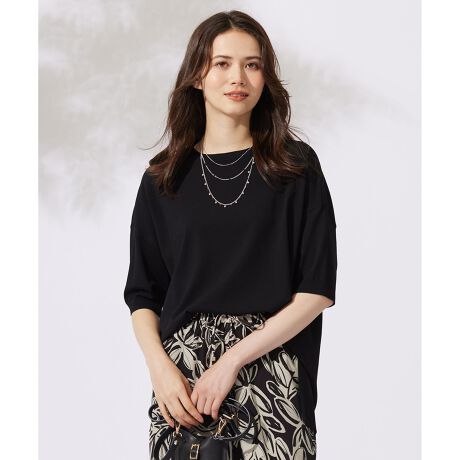 接触冷感・UVカット機能付き!人気のニットに新色が追加!■デザイン美しいドレープ感のあるキレイめなTシャツライクニットです。程よくゆとりのあるシルエットですが、落ち感のある素材なのでラフな印象になりすぎないデザイン。ジャケットやニットを羽織ってもストレスを感じにくく、ブラウスのようにきちんと感もあるのでインナーとしても最適です。着丈に前後差があるのでパンツスタイルにも合わせやすく、シーンを問わず活躍する汎用性の高いトップスです。■素材レーヨンとストレッチポリエステルを撚糸した糸を使用しております。ストレッチ性があるので動きやすく、身体に馴染みやすいのでストレスフリーな着心地です。撚りを強くかけているので、表面がクレープ状になっており、ドライタッチなシャリ感と清涼感がありながら、エレガントなドレープ性を合わせ持った素材です。接触冷感、UVカット機能付きです。■同アイテムの他のカラープルオーバー ニット(KRWMCM0452)