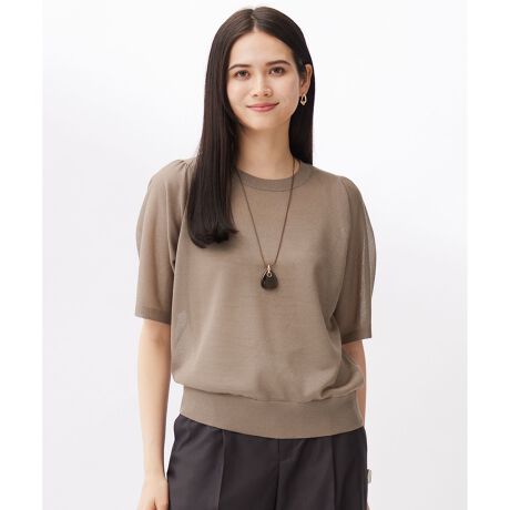 袖のボリューム感と繊細な煌めきが女性らしいプルオーバーニット■デザイン繊細なギャザーを入れたふわっと膨らむ袖が、華やかで女性らしい印象のプルオーバーニットです。シアー素材を使用しているので、ボリューム感のある袖も暑苦しくなく、涼しげな印象で着て頂けます。ややコンパクトな身頃のサイズ感なので、ワイドなボトムと合わせて着て頂くのもおすすめです。■素材程よいハリコシと心地よい清涼感、ブライト糸ならではの繊細な煌めきのある表情が華やかな素材です。暑い夏にも着て頂きやすいシアー感のある素材になっております。■同素材アイテムカーディガン(KRWMGA0053)