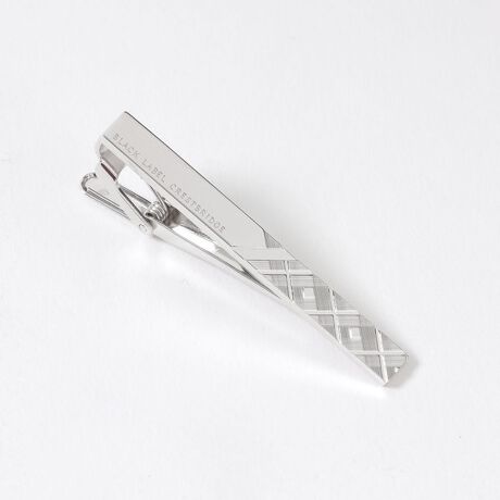 プレートの片側に繊細なカットでクレストブリッジチェックを施したシンプルでスタイリッシュなデザインのタイバーです。汎用性が高く、ギフトにもオススメの1品です。