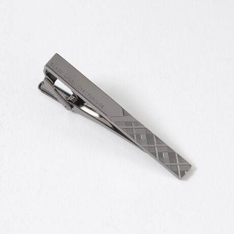 プレートの片側に繊細なカットでクレストブリッジチェックを施したシンプルでスタイリッシュなデザインのタイバーです。汎用性が高く、ギフトにもオススメの1品です。