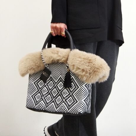 大きめなサイズ感でボリュームのあるファーを使用、メルカドバッグに蓋のように被せられるので、中身の見える心配はありません。