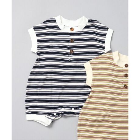 BREEZE(ブリーズ)のカバーオール・ロンパース「【Bpop】マルチボーダーロンパス」は、小さいお洋服にこだわりを詰め込んだ大人顔負けのデザインが人気!出産祝いのギフトにもおすすめです♪