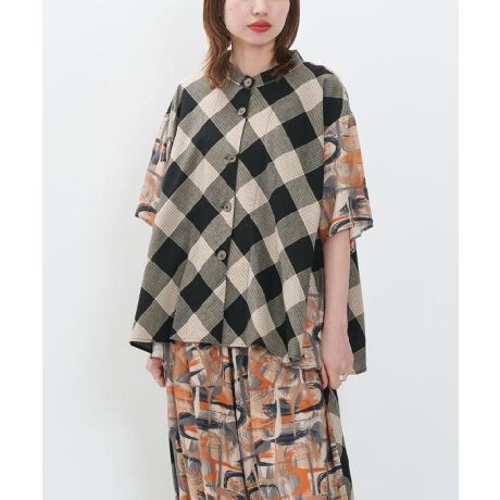 チェックと柄の2種類の生地をMIXさせてシャツを作りました。