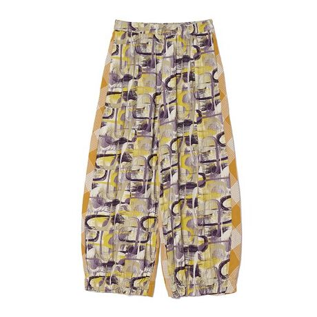 チェックと柄の2種類の生地をMIXさせてパンツを作りました。