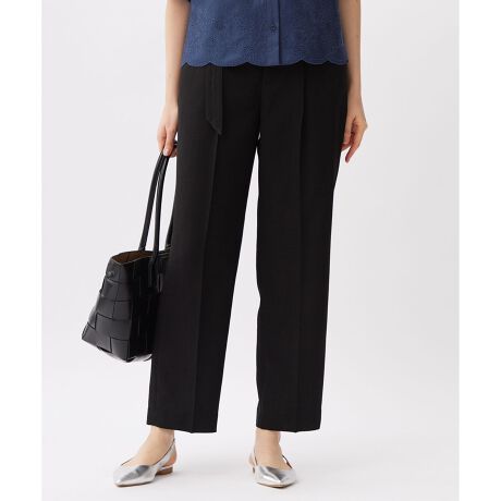 清涼感のある、ゆるめのテーパードシルエットパンツ■デザイン1タックのゆるめのテーパードシルエットパンツです。ゆるめのテーパードなので、体のラインを拾いにくいのがポイントです。付属の共布ベルトはDカンとステッチが入っているので、少しカジュアルなコーディネートにも合わせて頂けるようにしています。同素材のブラウス(BLW7GA0005)やジャケット(JKW7GA0005)と合わせてセットアップとして着て頂くのもおすすめです。■素材ナチュラルな濃淡色調の清涼感のある麻調素材です。トリアセテートを使用した適度なシャリ感のある素材で、タンブラー加工を施すことでナチュラルな風合いに仕上げています。シワになりにくく、吸放湿性に優れ、UVカット、接触冷感と暑くなる時期に嬉しい機能性のある素材です。■同素材アイテムブラウス(BLW7GA0005)ジャケット(JKW7GA0005)