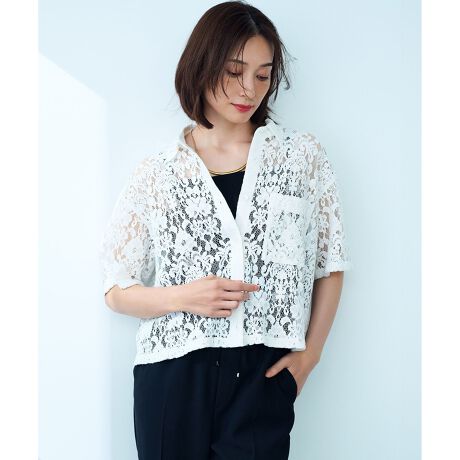 カジュアルな質感のコットンベースのレース素材を使ったハーフスリーブシャツ。カジュアルな質感ながらも繊細な透け感が大人っぽい雰囲気に。フロントをあけて羽織りとしてお召しいただくスタイリングがおすすめです。コンパクトな着丈なので、ボトムとのバランスがとりやすいアイテムです。カラーは合わせやすい2色展開。爽やかなホワイト(#001)とシックでお洒落なブラック(#005)です。