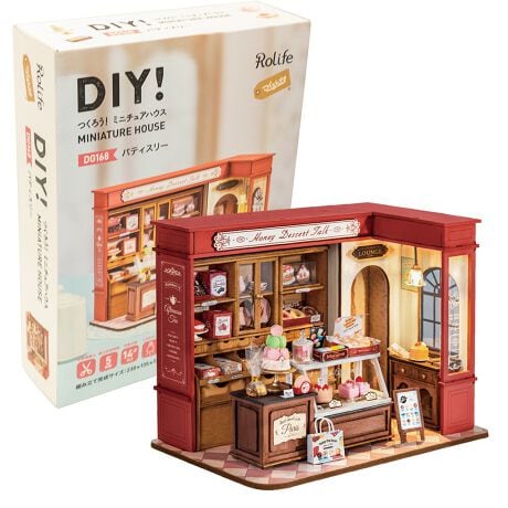 おしゃれな食器や可愛いケーキ、ドーナツなどの小物がたっぷり!お菓子の配置や包装など細かい作業はありますが、プラスチックパーツが多く、難しい組立作業が少ないので初心者の方にもオススメです◎