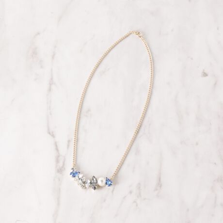 [型番:2614-53012]ビジューとパールが美しく配置され、シンプルながらも目を引くアクセサリー。落ち着いた色合いでありながら、どんなコーディネートにもぴったりマッチし、特別な日やカジュアルなシーンにも適しています。上品な輝きを放ち、女性らしさを引き立てる素敵なアイテムです。