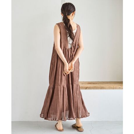 揺らめくウェーブプリーツが印象的なティアードワンピース。