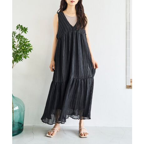 揺らめくウェーブプリーツが印象的なティアードワンピース。