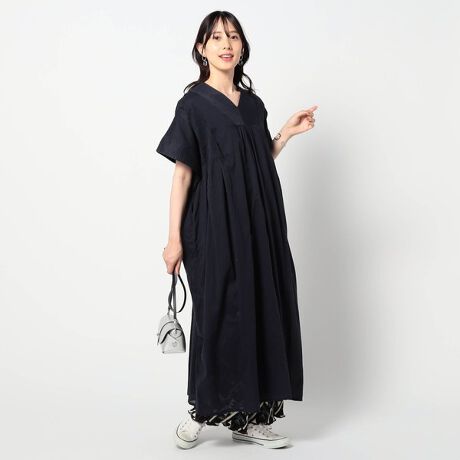 直線裁ちに近い、体を締め付けないシンプルでゆったりとしたカフタン風ワンピースです。