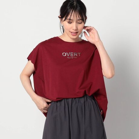 シルバー箔プリントタックショルダーカットソー