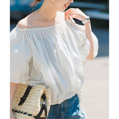 オフショルにして女性らしいヘルシーな着こなしにも、そのままでもボートネックのように着ることが出来るので肌見せが気になる方も安心して着用できるのが嬉しいポイント。