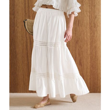 ウォッシュドコットンレースティアードスカート