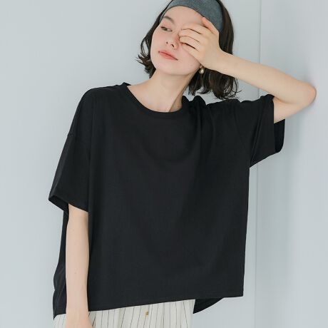 ゆったりとしたサイズ感と、綿100%という肌触りが良い素材なので、着心地がとても良くて気に入りました。色々なボトムにも合わせやすくて使いやすいです。