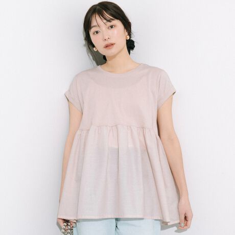 シンプルなのに、ちゃんと華やか。クルーネックドッキングギャザートップス