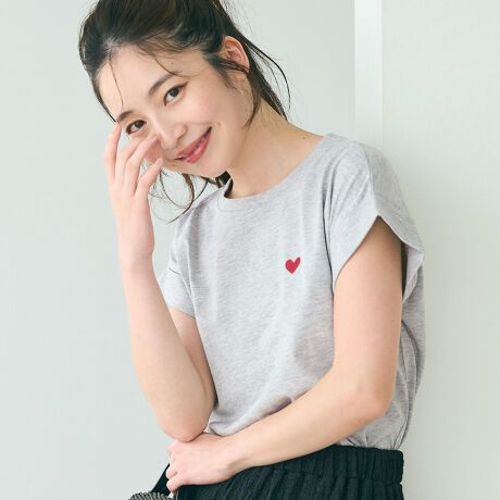 刺繍ロゴとフレンチスリーブが大人可愛い、着映えTシャツ