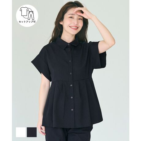 軽やかなサッカー生地とペプラムシルエットが魅せる、きれいめカジュアルブラウス