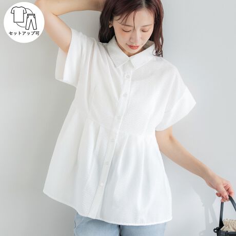 軽やかなサッカー生地とペプラムシルエットが魅せる、きれいめカジュアルブラウス