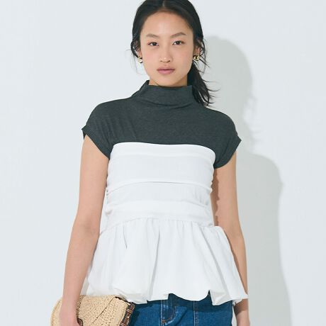 胸元をしっかりとカバーしつつ、コンパクトな丈感でスタイルアップ効果も◎