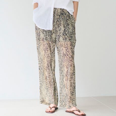 透け感で魅せる、大人の抜け感パイソン柄パンツ<