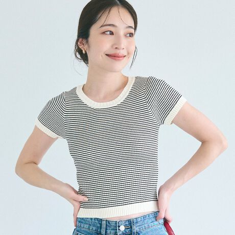 爽やかなボーダー柄で夏コーデを格上げ!着回し自在な半袖ニットトップス。