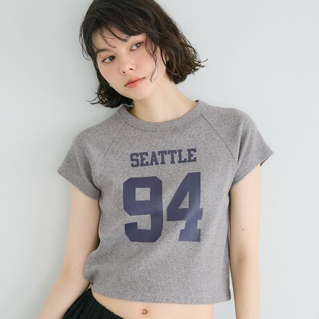 フィット感のあるテレコリブ素材に、英字&ナンバリングを組み合わせたロゴプリントがアクセント。