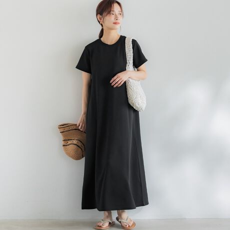ふんわりとしたシルエットで体のラインを拾わず、1枚で着映えするマキシワンピース。