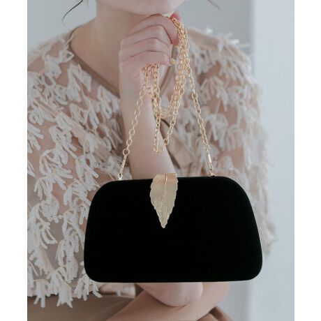 やわらかな光沢が美しいベロア素材に、ゴールドのリーフモチーフが印象的に映える2WAYバッグ。