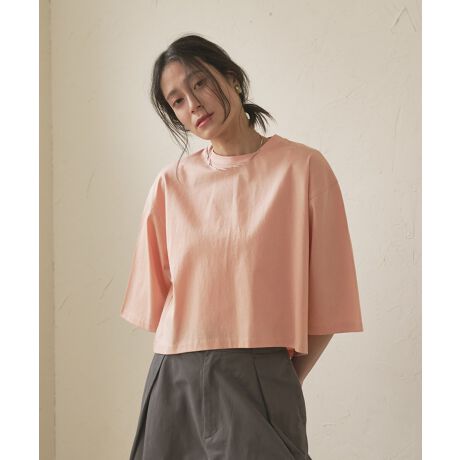 クルーネック五分袖ワイドカットソー-手洗い可-
