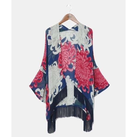 鮮やかな芍薬や菊の花を全面にデザインしたUVカット羽織。さらりと羽織れて持ち運びに便利な薄いレーヨン素材。錦上添花(きんじょうてんか)とは、美しい錦(にしき)の上にさらに美しい花を置くという意味から、良い上にさらに良いものを付け加えることを例えた言葉。