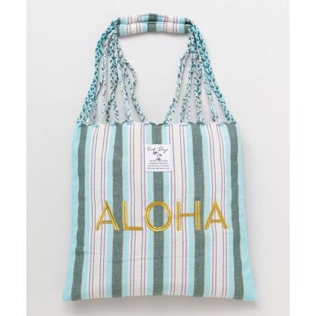[型番:43SP5201-2025]ビーチにぴったりなお洒落なハンモックトート。きらっと光るゴールドのALOHAの刺繍がポイント肩掛けしやすい長さど持ち運びが便利です。内ポケット付き