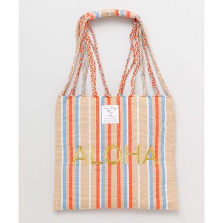 [型番:43SP5201-2025]ビーチにぴったりなお洒落なハンモックトート。きらっと光るゴールドのALOHAの刺繍がポイント肩掛けしやすい長さど持ち運びが便利です。内ポケット付き