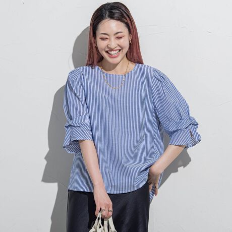 袖口にタックを入れた立体的なデザインで、気になる二の腕もさりげなくカバー。