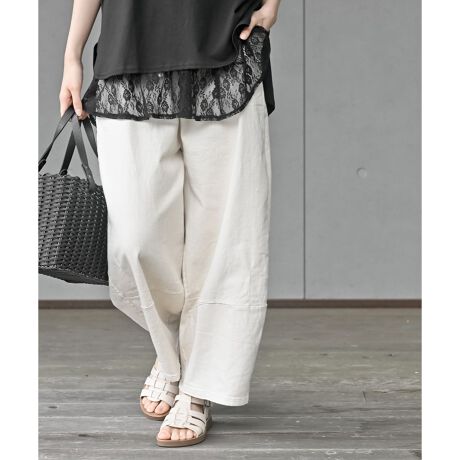 ひざ下を絞って丸みをつけた女性らしい装いが楽しめる1枚です。