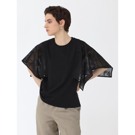 ワントーンの中に表情と奥行きを感じさせる、刺繍レースをあしらったカットソー。女性らしい印象ながらも甘さを控え、大人のデイリー巣地あるに馴染むAgaらしいデザインに。着回しの効くモノトーンカラーがこの夏重宝するデザインアイテムです。