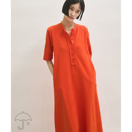 バスト辺りは程よく体に添ったサイズ感で、裾に向かって適度に広がるシルエットのヘンリーネックワンピース。