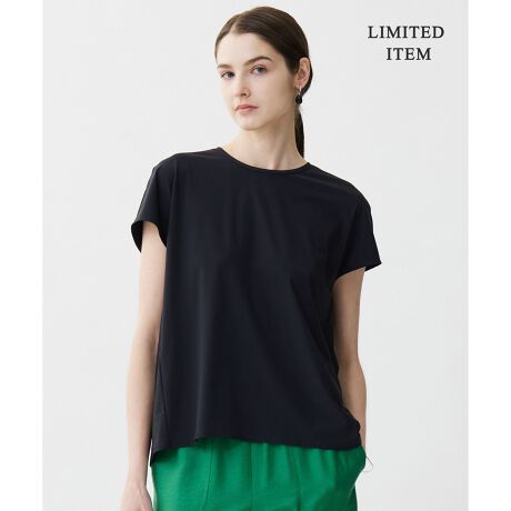 ■デザインシンプルなTシャツ型のクルーネックプルオーバーです。後袖が回り込んでいる変形パターンで二の腕カバーができるパターンにこだわりました。同シリーズのパンツやスカートとのセットアップ着用はもちろん、ジャケットや羽織のインナーとしても便利なアイテムです。