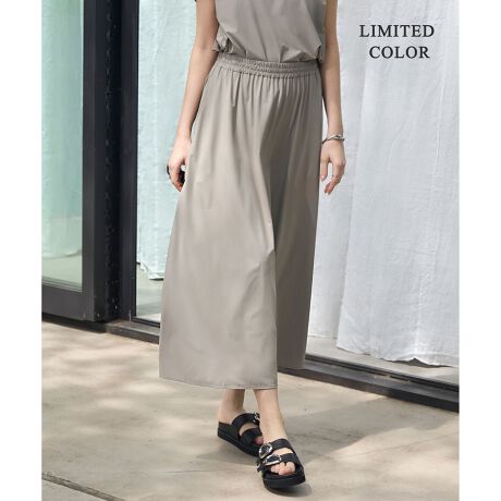 ■デザインウエストゴムのギャザーフレアスカートです。ウエストの内側にドロストコードつきで好みのサイズ感に調整が可能です。脇ポケット付きなのも嬉しいポイント。単品はもちろん、同シリーズのトップスと合わせてセットアップでの着用もおすすめ。旅行や出張などアクティブなシーンで活躍間違いなしの1枚です。