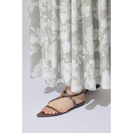 【スタイリッシュなデザインがリラクシーに履けるサンダル】■ポイントポインテッドトゥの華奢なデザインに、細身のアシンメトリーのベルトが大人可愛いローヒールサンダル。■ディテールローヒールでも足が痛くならないように靴底に少し綿を入れクッション性を付け歩きやすい仕様にしました。足首の太さによっては、金具を付けたままでも着脱ができるように金具の側にゴムを施しサッと履けるディテールに拘りました。■スタイリングロング丈のフレアワンピースや、フルレングスのボトムスのリラクシーなアイテムにとても相性が良いです。色展開もアイボリーとブラック、トレンドカラーとなるブラウンの3色なので幅広いコーディネートにマッチします。■商品のお気に入り登録お気に入りアイテムの再入荷・在庫1点などの通知を受け取ることができます。[注意事項]※画像の商品はサンプルです。実際の商品と仕様、加工が若干異なる場合があります。※画像の商品は光の照射や角度、お使いのモニター環境により、実物と色味が異なる場合がございます。※着用、お取り扱いの際は、アテンションタグをご確認ください。