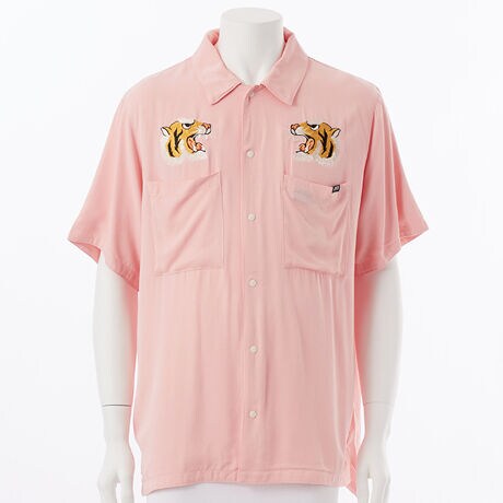 レーヨン素材を用いた、スカジャン刺繍の半袖シャツです。(ダウンは入りません)