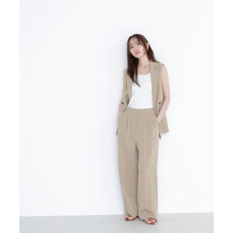シンプルで着回せるパンツは、ドライタッチな風合いなので暑い夏も同素材のジレとレイヤードが楽しめます。裏地がなく一重なのでさらりと着こなしやすいデザイン。後ろウエストはゴムなのでラクに着脱いただけます。<素材>ドライタッチでハリがあり、ポリウレタン混で微ストレッチが効いた素材です。<詳細>仕様・前ファスナー裏地・なし透け感・なし / 光沢・なし / 伸縮性・なし生地の厚さ・普通<シリーズ>■ジレ[品番:0175255700]※モデルの着用画像の場合、光の当たり具合により、実際の色味と異なって見えることがございます。色味は、商品単体の画像をご参照ください。