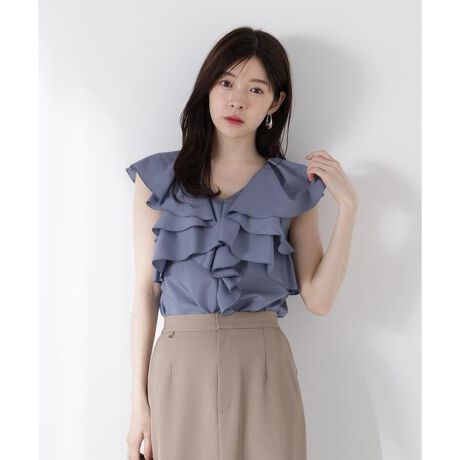 大きいフリルディテールが目を引くキレイめブラウスです。トレンドの縦に流れるようなフリルディテールを入れており、どんなコーディネートも女性らしい雰囲気を演出。スカートやデニムパンツとも着ていただけます。