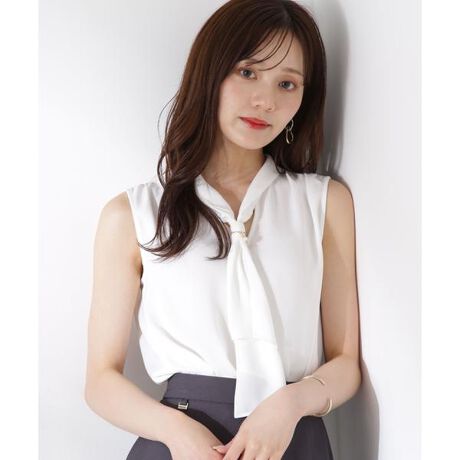 フリルタイのアレンジでONにもOFFスタイルにも着回せるブラウスです。(1)取り外しできるチャーム&バンドで、フリルタイをまとめて華やかに。(2)チャームを外してオフィススタイルに。(3)バンドを外して、フリルタイを一つ結びにするとラフなフェミニンスタイルに。スカートでもパンツスタイルでもほど良くフェミニンな雰囲気を叶えてくれます。